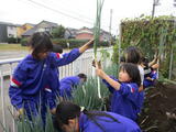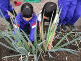 待ちに待ったネギ収穫の日。ながいネギが折れないようにみんなで声を掛け合いながら慎重に収穫しました。また、ホワイトスターの白い部分がきれいに見えるように外の薄皮を剥く作業は、涙を浮かべながらも精一杯頑張りました。