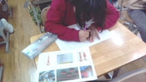 「未来につなぐ工芸品」という説明文を読んだ子供たちは、一人一人が興味をもった工芸品について、インターネットや本を使って調べ、文章にまとめました。文章に合う写真を選び、読む人に分かりやすくなるように工夫しました。