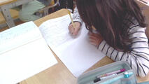 子供たちが落ち着いて、ていねいに書く書写の授業。