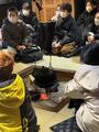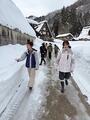 6年生は、今年度最後の校外学習で世界遺産にも登録されている五箇山の相倉合掌造り集落に行ってきました。 バスに揺られて山を越えると、まるで昔話の世界のような景色が広がっていました 。近くで見ると合掌造りは大迫力でした。 まず驚いたのは、かやぶき屋根の大きさです。「合掌(がっしょう)」という名前の通り、手を合わせているような急な角度の屋根は、重い雪に耐えるための工夫なのだそうです。 実際に家の中に入らせていただくと、太い梁(はり)や、囲炉裏(いろり)から上がる煙の匂いがして、昔の人の暮らしを肌で感じることができました。始めに合唱造りの長い歴史や合唱造り家屋は住宅兼工場だったこと等についての話を聞きました。その後、家屋の中を見学 しました。広い屋根裏で養蚕や土間での和紙作り、床下での塩硝(えんしょう)作りなど、空間を有効かつ快適に利用していることが分かりました。その後、昼食の弁当を食べた後、ガイドの方から集落周辺を案内してもらいました。最後は、色団ごとに散策をして帰りました。冬の五箇山で素晴らしい景色と合掌造りを見ることができ、小学校生活のよい思い出となりました。