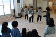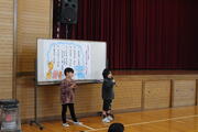 つづいて、学校紹介。高野小学校からは、全校で取り組んでいる「マイジョブ活動」の紹介をしてもらいました。あいさつ運動や掃除など、自分たちにできることをする、という活動の話を聞いて、利田っ子からも「自分たちもやってみたい」という感想が聞こえてきました。利田小学校からは、授業中に取り組んでいる音読や、休み時間にがんばっている縄跳び運動の紹介をしました。