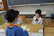 交流で予定している学校紹介の概要や、楽しみにしていることを伝え合いました。また、高野小学校と利田小学校の混合チームで活動する予定なので、それぞれのチームの顔合わせを行いました。