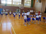 この日は、「言うこと一緒、やること一緒(反対)」や「ケンパー跳び」をしました。何度も繰り返していくうちに、リズムよく跳べたときの楽しさを感じる子、上手くいかなかったときに「もう一回!」と粘り強く取り組む子、みんな一生懸命取り組みました。