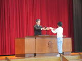 終業式と修了式の違いについてお話があった後、各学年の代表がしっかりと修了証を受け取りました。