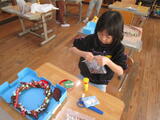 生活科「あきと あそぼう」の学習で、自分が育てたアサガオのツルを束ね、リースづくりをしました。