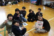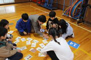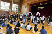 5年生が中心となり、今までお世話になった6年生に感謝の気持ちや卒業をお祝いする気持ちを表すための集会を行いました。縦割り班ごとに輪になり、4年生が用意した「ありがとうかるた」のかるたを取ったり、感謝の思いを伝えたりしました。6年生は、色紙のプレゼントや感謝の言葉にうれしそうな笑顔を見せていました。